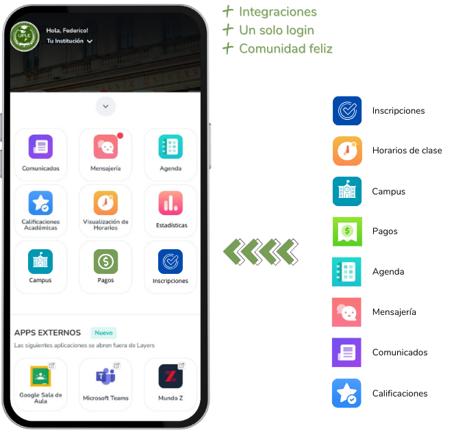 Nos integramos con las herramientas escolares que utilices para que toda la información conviva en el mismo lugar.