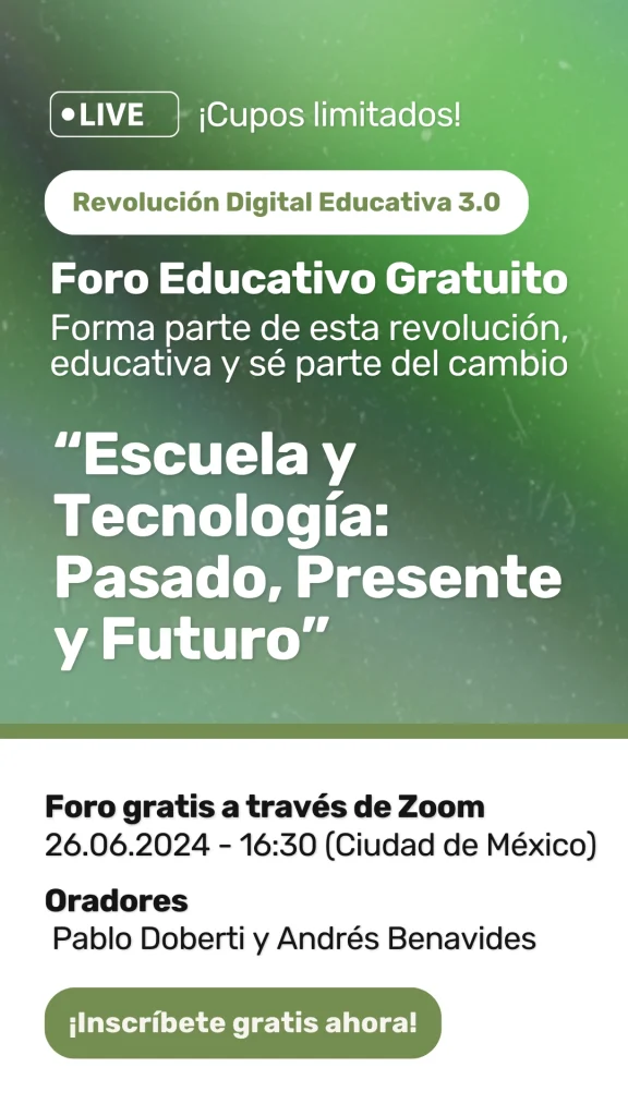 Este foro nos llevará desde la implementación efectiva de herramientas tecnológicas hasta la integración de pedagogías innovadoras y la propia construcción de un escuela en formato digital. Ofrece perspectivas y estrategias fundamentales para líderes educativos, dueños de escuelas y todos aquellos comprometidos con el futuro de la educación en México.